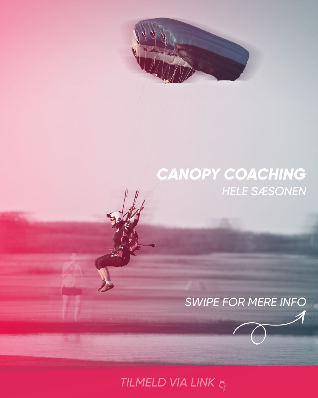 28-29 august -> Her afslutter vi programmet. Det bliver i et mere klassisk skærmflyvningskursus format, hvor jeg filmer og debriefer jer, og du bare fokuserer på at springe og hygge dig sammen med dine springkammerater. Vi laver små konkurrencer og slutter det hele af med en fest